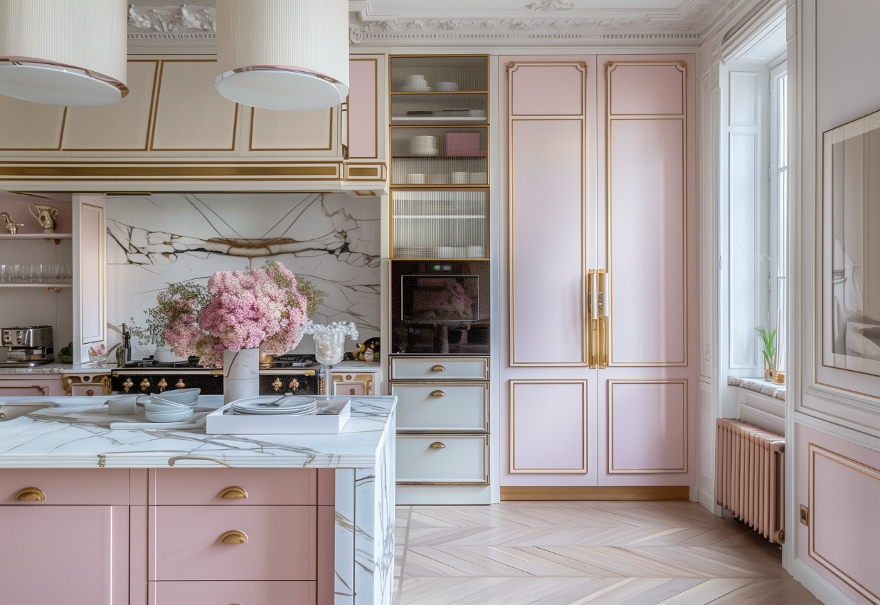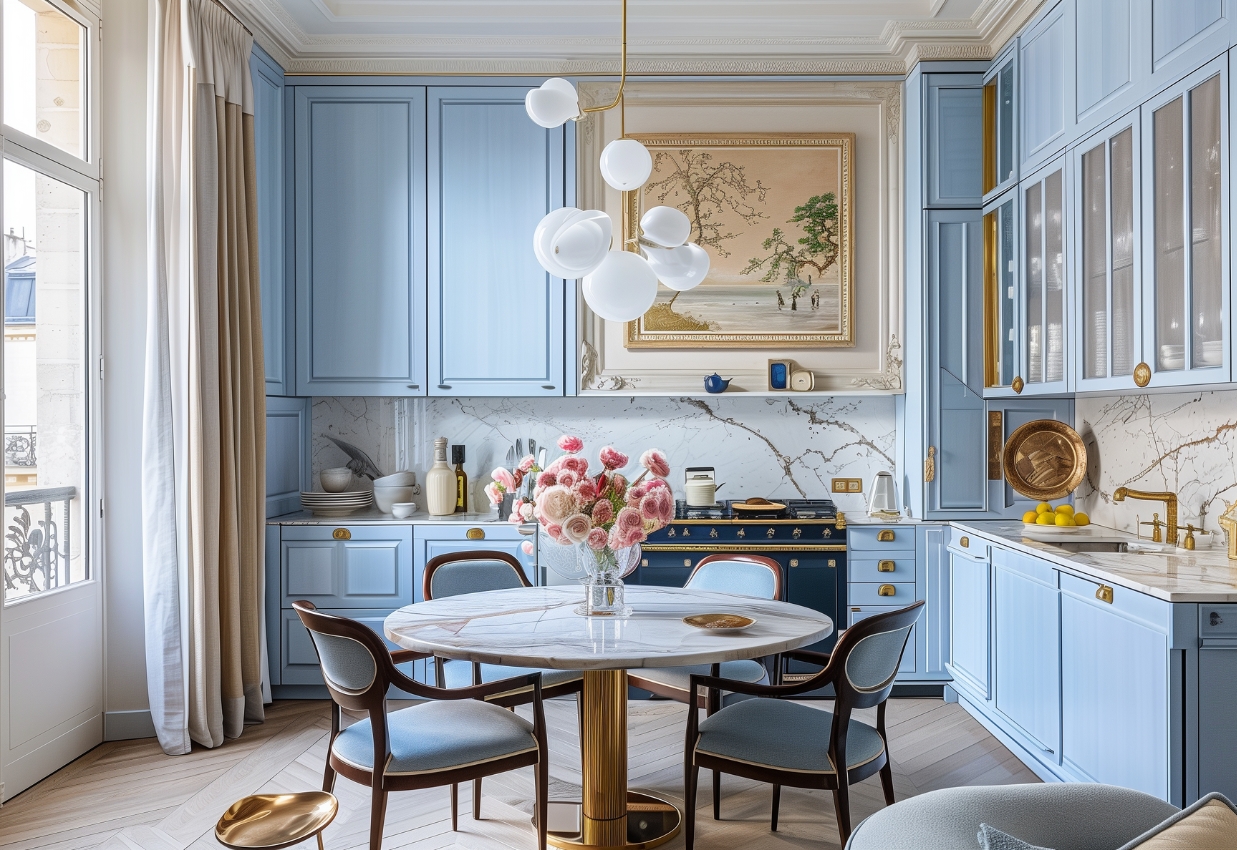 Дизайн кухни в неоклассике — это чистое искусство. Вдохновение кулинарией здесь буквально витает в воздухе. От атмосферы мишленовского ресторана до «Рататуя» и «Завтрака у Тиффани» — кажется, именно здесь происходит все самое волшебное.