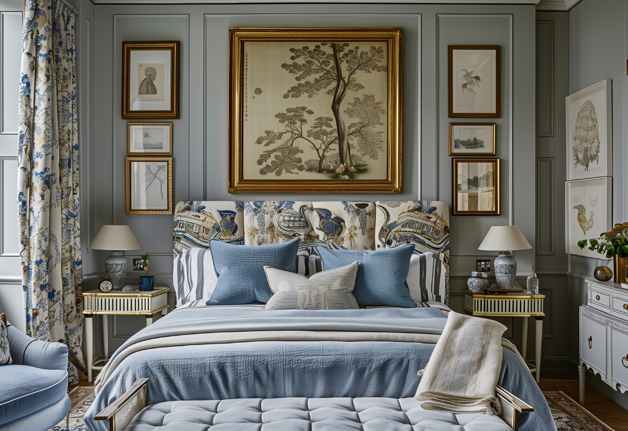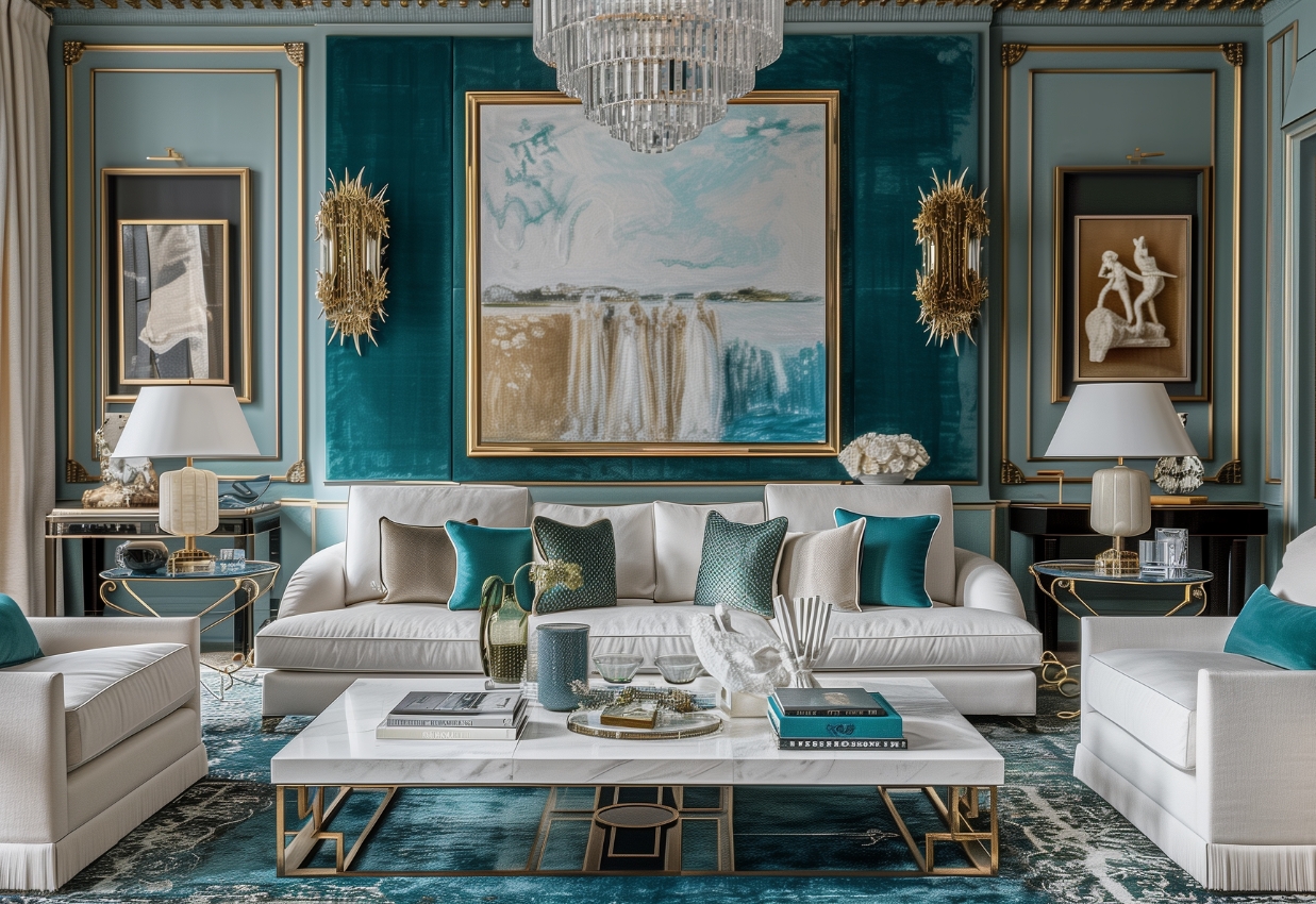 — классические картины (масляные натуралистичные пейзажи и импрессионизм), золотые статуэтки и декор из металла;