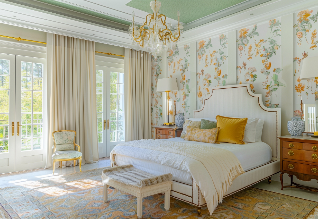 Стиль неоклассика в интерьере нельзя воспринимать и без характерных орнаментов: растительных, флористических, природных. Популярны также французский шеврон, гусиная лапка, дамаск, китайский шинуазри, а в последние сезоны здесь встречаются даже тропические мотивы.