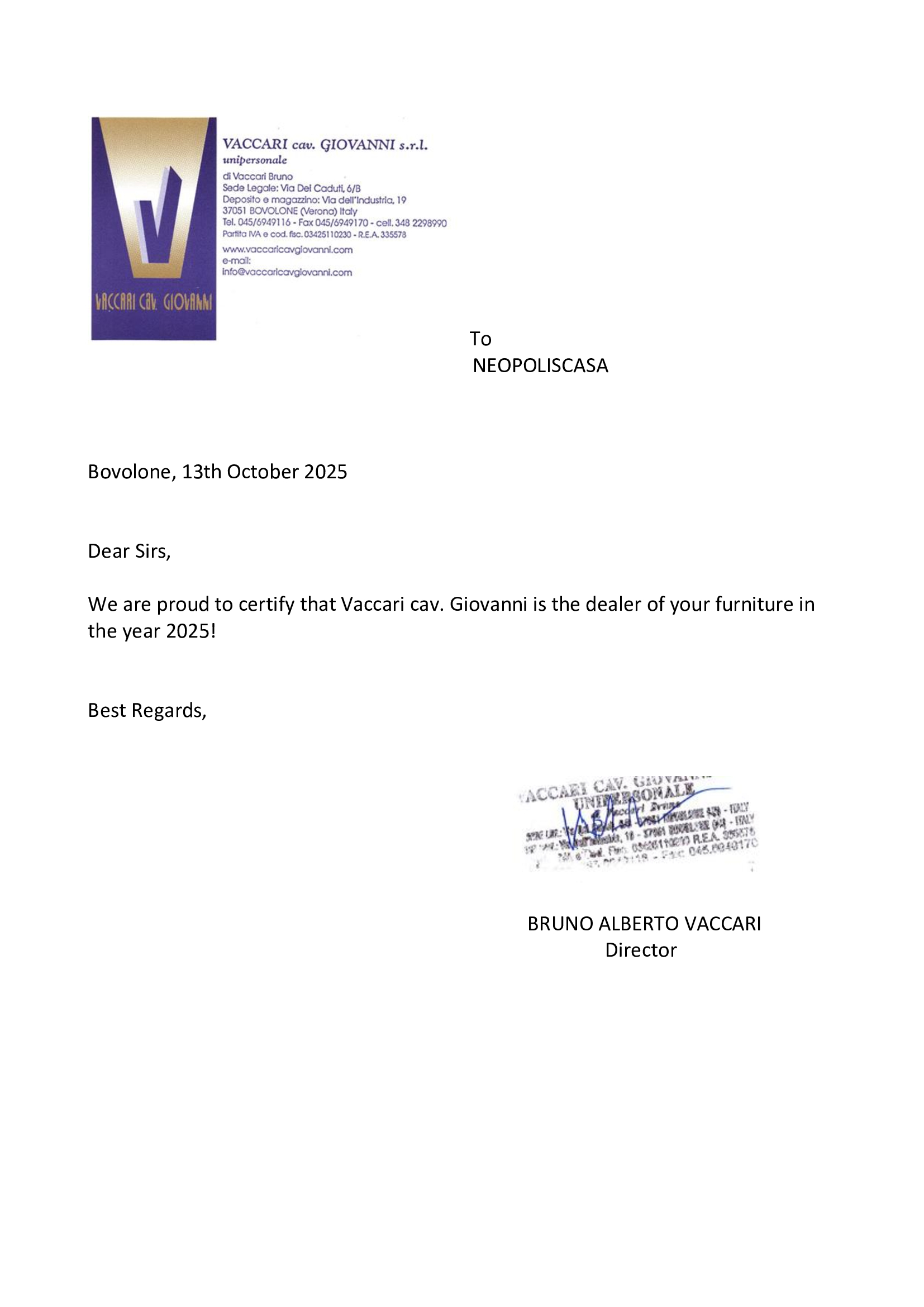 Итальянская фабрика VACCARI  была создана Джованни Ваккари  в 1955 году. Компания специализирована  на производстве классической мебели ручной работы, выбирая высококачественные натуральные материалы и заботясь о мельчайших деталях отделки. В 1979 году основатель компании VACCARI Джованни Ваккари был награжден президентом Итальянской Республики, господином Пертини, званием Cavaliere del Lavoro за большой вклад в развитие отрасли экономического сектора. Весь свой опыт, который он приобрел за 25 лет ремесла, и страсть к мебельному искусству Ваккари старший передал своему сыну — Бруно Ваккари, который вырос в мастерской своего отца и, на сегодняшний момент, более сорока лет развивает фабрику Vaccari, качество мебели которой признано во всем мире.