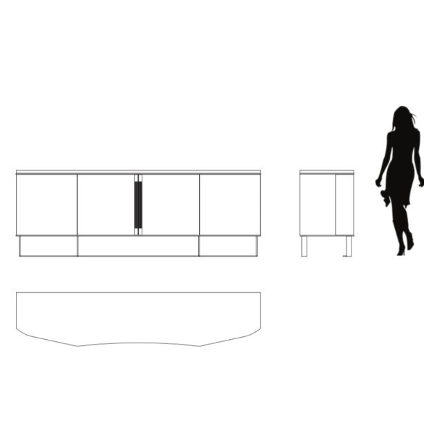 Изготовлен из высококачественного шпонированного МДФ, ножки из полированной стали в отделке дымчатый хром. Буфет оснащен четырьмя распашными дверками, внутри деревянные полки по одной в каждой секции и выдвижной ящик.