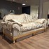 Диван-кровать с частично съемными чехлами, выполненный в классическом стиле из массива сосны и многослойной фанеры из тополя со вставками из массива бука. Наполнение из вспененного недеформируемого полиуретана с разной плотностью. Двухсторонние подушки сидения выполнены по эксклюзивной запатентованной системе SUPER SOFT SYSTEM: представляет собой очень мягкое сидение, состоит из блока независимых пружин и пуха-пера вокруг блока.