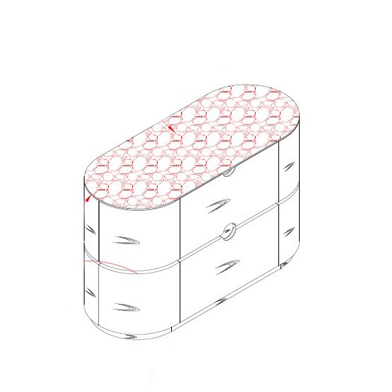 Комод с двумя с выдвижными ящиками со скрытыми направляющими и современной системой легкого открывания push-to-open (открывание нажатием). Закругленные боковые секции - дополнительное место для хранения, скрытое за дверцами, с аналогичной системой открывания.