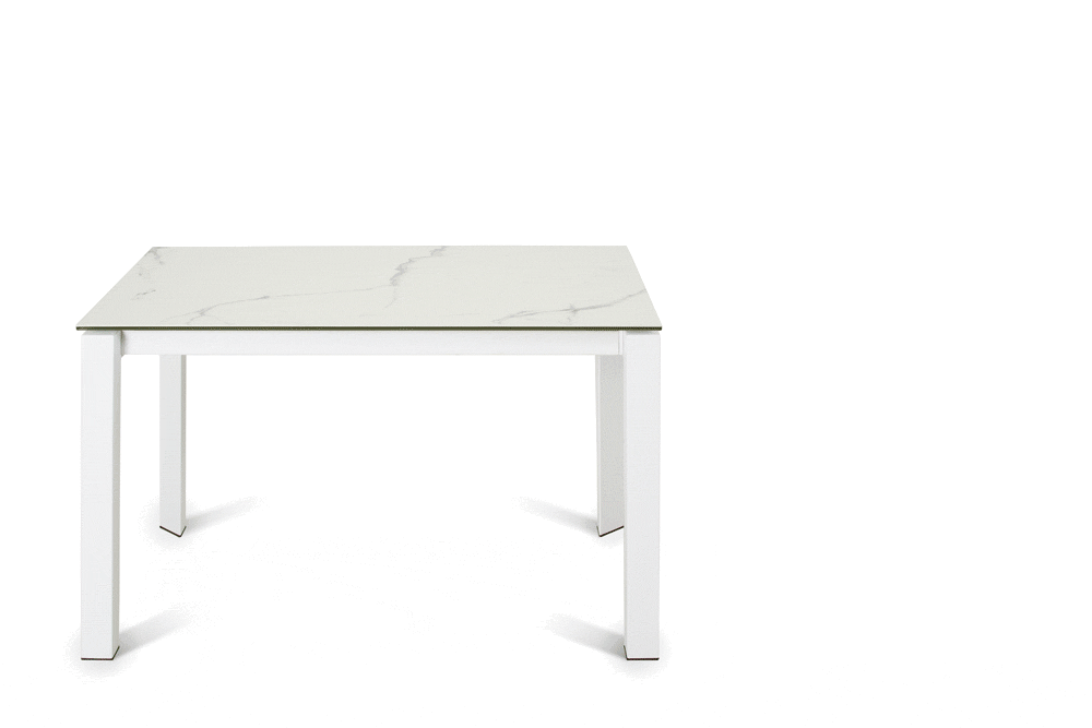 Столешница стола выполнена из закаленного стекла (8 мм) с верхним слоем керамики (5,5 мм). Она не боится ударов, пятен и горячей посуды. При этом, выглядит стильно и дорого.