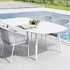 Полукресло имеет алюминиевую структуру с порошковым покрытием. Декорирован красивым вертикальным плетением. Сидение обтянуто тканевой обивкой с наполнением из резины Dryfeel. Все материалы прекрасно отводят влагу, что делает изделие подходящим для использования на открытом воздухе. Тканевые чехлы съемные.