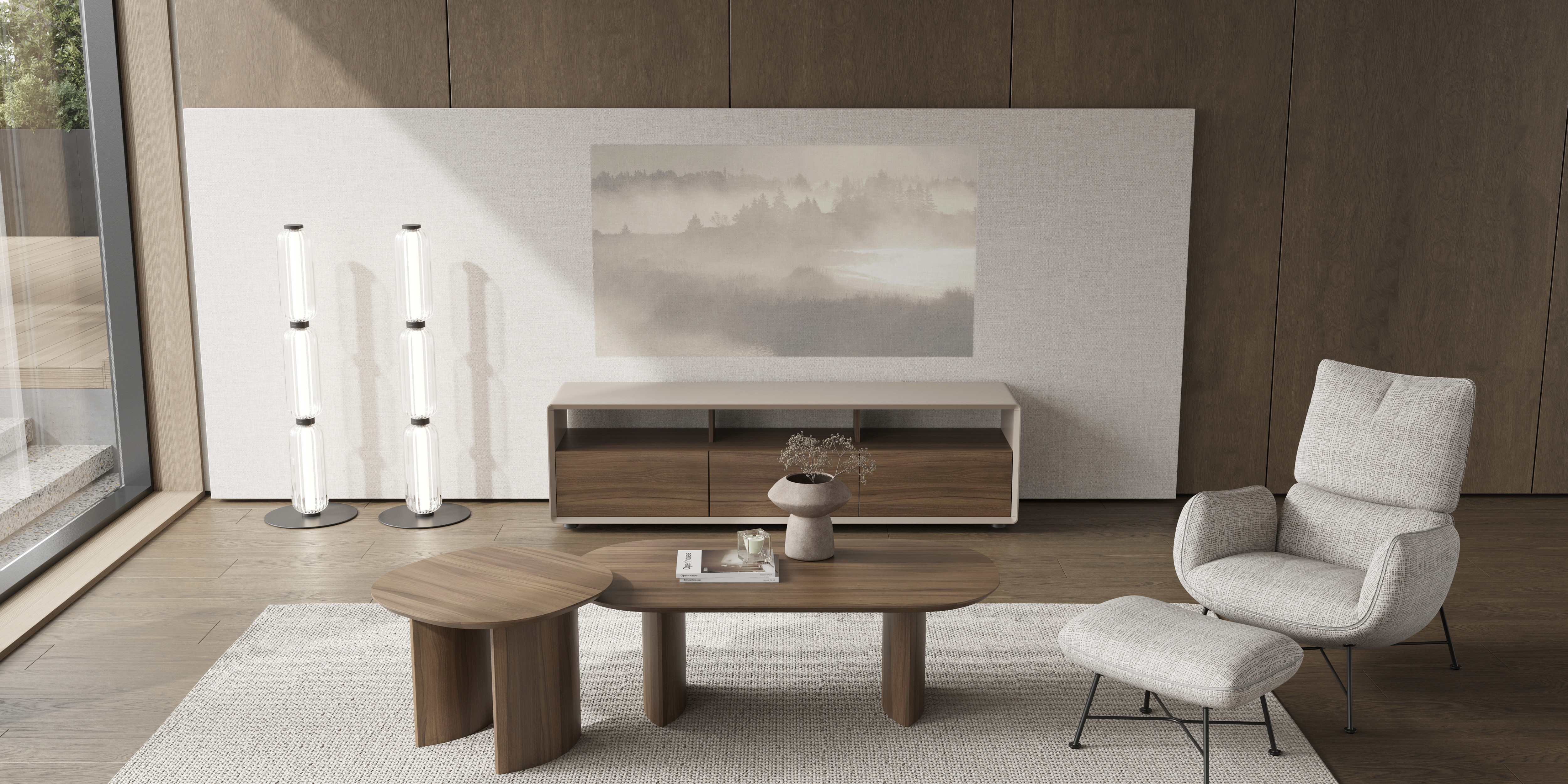 Лаконичные и универсальные журнальные столики Olimar легко сочетаются друг с другом. Они также дополнят интерьер гостиной с мягкой мебелью из коллекции Selection MOD Interiors.