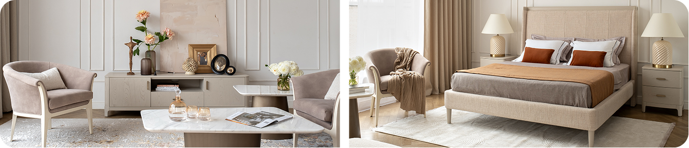 В коллекцию вошли девять предметов мебели для спальни, столовой и гостиной, которые легко комбинируются между собой, позволяя создать сбалансированное и элегантное пространство. Bianca гармонично сочетается с аксессуарами и светильниками бренда Eichholtz, дополняя интерьер утонченными деталями.